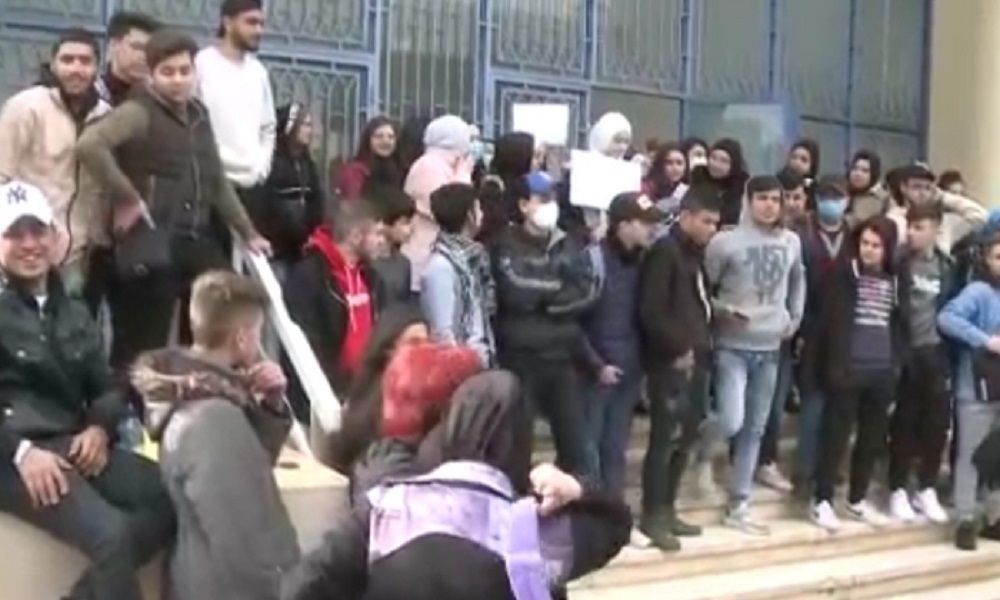 ورددوا هتافات تطالب وزير التربية بالعودة عن قراره والنظر الى الظروف المعيشية والاقتصادية الصعبة التي يعاني منها معظم الطلاب.