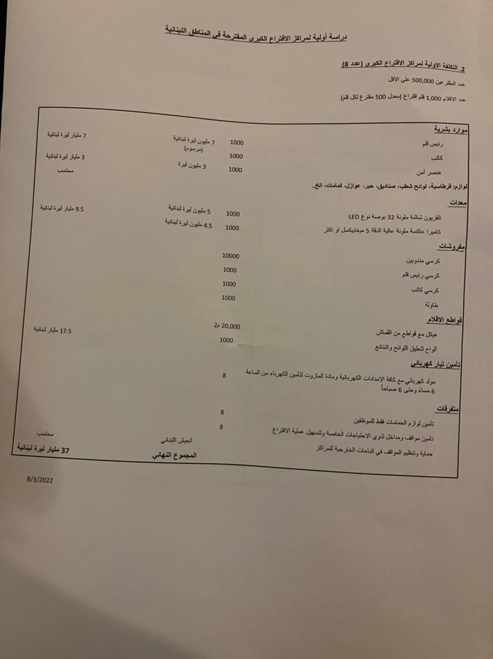 وحصلت الـLBCI على الدراسة الاولية لمراكز الاقتراع والاجراءات اللوجستية والكلفة المخفضة التي اعدت خلال اجتماع وزارة السياحة.