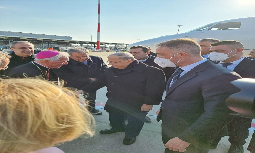أكد رئيس الجمهورية ميشال عون، بعد وصوله إلى روما، “أنني احمل الى قداسة البابا رسالة محبة باسم اللبنانيين وتجديد الدعوة لزيارة لبنان كي يعيد اليه الرجاء بانطلاقة مسيرة التعافي”.