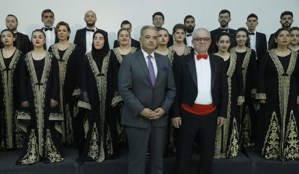 وقدم المرتضى درع وزارة الثقافة لكورال الفيحاء بشخص المايسترو تاسلاكيان عربون تقدير وشكر.