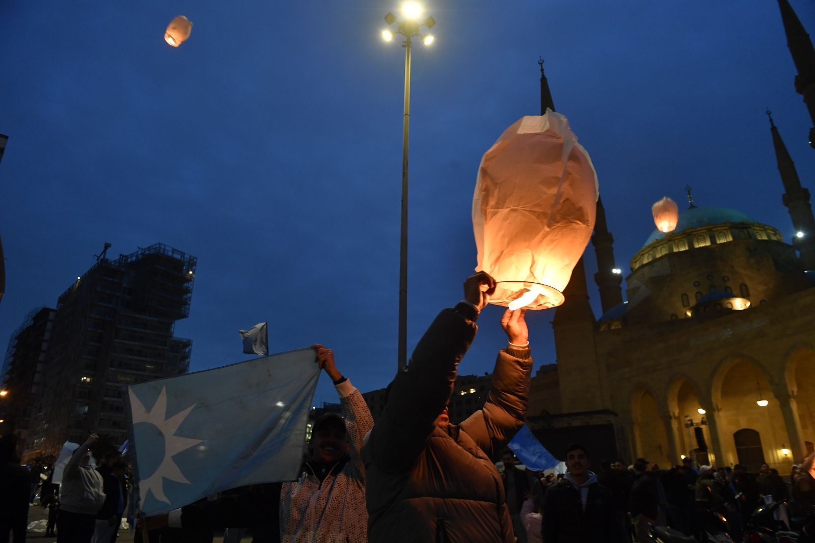 وشهدت الساحة إطلاق 500 منطاد مضيء في سماء العاصمة، في مشهد رمزي عبّر المشاركون خلاله عن الوفاء لذكرى الحريري.