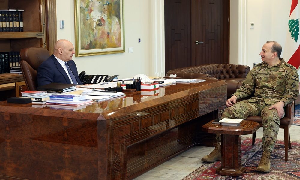 عرض رئيس الجمهورية العماد جوزاف عون مع قائد الجيش العماد رودولف هيكل، الأوضاع الأمنية في البلاد عموماً وفي الجنوب خصوصاً، إضافة إلى الاجراءات التي يتخذها الجيش في بيروت والمناطق اللبنانية كافة لحفظ الأمن والاستقرار، لاسيما في مراكز إيواء النازحين والتشدد في تطبيق التدابير الأمنية.