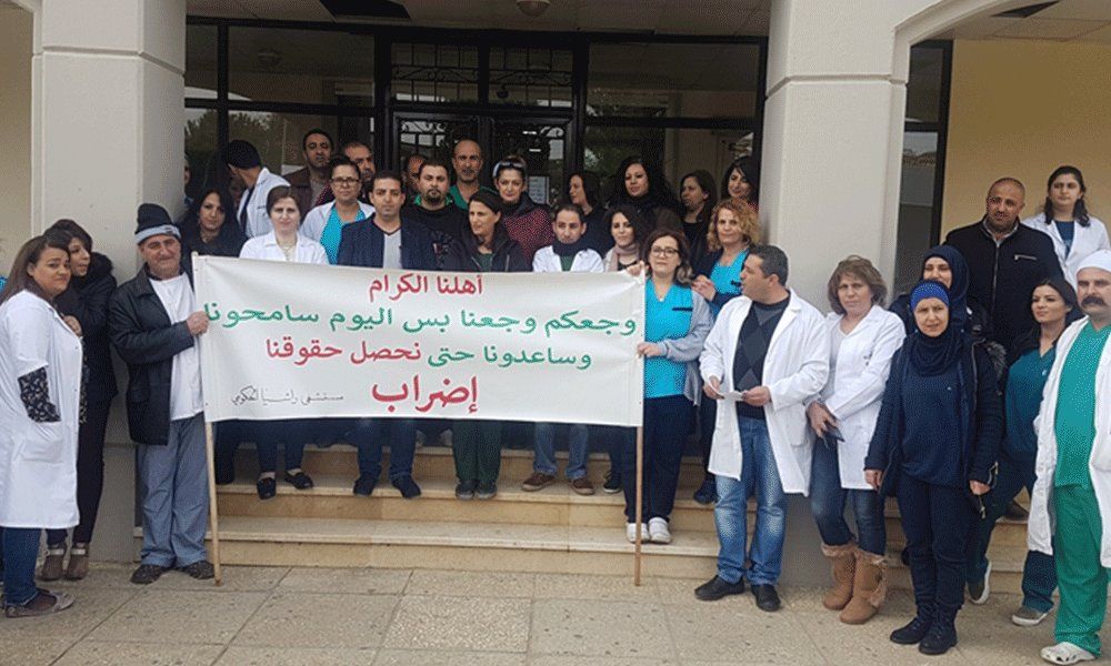 نفّذ عدد من موظفي المُستشفيات الحكومية، أمس، اعتصاماً أمام مبنى وزارة الصحة العامة في بئر حسن في بيروت، احتجاجاً على عدم حصولهم على رواتبهم منذ عدّة أشهر. موظفو مستشفى إهدن الحكومي، مثلاً، لم يتقاضوا معاشاتهم منذ 18 شهراً، فيما لا يزال ينتظر زملاء لهم في مستشفى سير الضنية الحكومي الحصول على رواتبهم منذ ثمانية أشهر. كذلك الحال بالنسبة إلى موظفي مستشفى جزين الحكومي، الذين لم يقبضوا رواتبهم منذ ستة أشهر، وموظفي صيدا الحكومي منذ أربعة أشهر.
