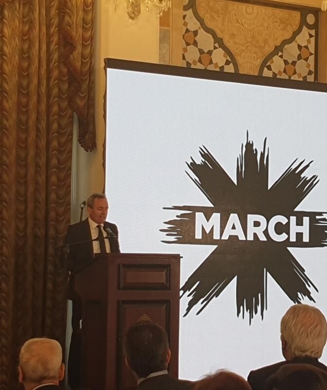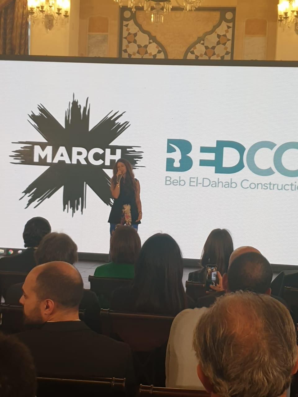 بدأ الحفل بالنشيد الوطني اللبناني، تلته كلمة المديرة جمعيّة مارش السيّدة ليا بارودي تحدّثت فيها عن بداية مسيرتها في طرابلس التي كانت مع مسرحيّة نتج عن نجاحها إنشاء قهوة ثقافيّة جمعت بين شبّان باب التبانة وجبل محسن، ثم توالت النجاحات حتى تمكّنت من تنفيذ مشروع “باب الذهب” الذي أعاد الحياة لحوالي ثلاثمائة محل تجاري وبعض الشوارع والأماكن العامّة، بعد سنوات من النزاع والدمار.