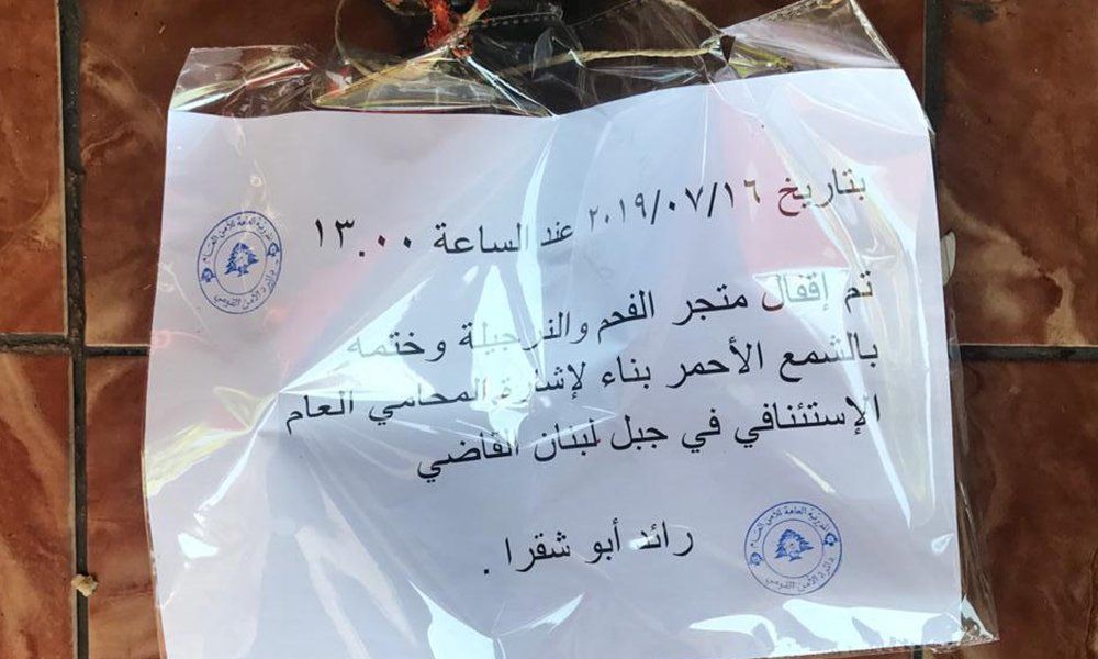 أقفلت دورية تابعة للامن القومي في الامن العام، بناء لاشارة النيابة العامة الاستئنافيه في جبل لبنان، محلا لبيع النراجيل ومستلزماتها بالشمع الأحمر في دوحة عرمون، يستثمره شخص من التابعية السورية.