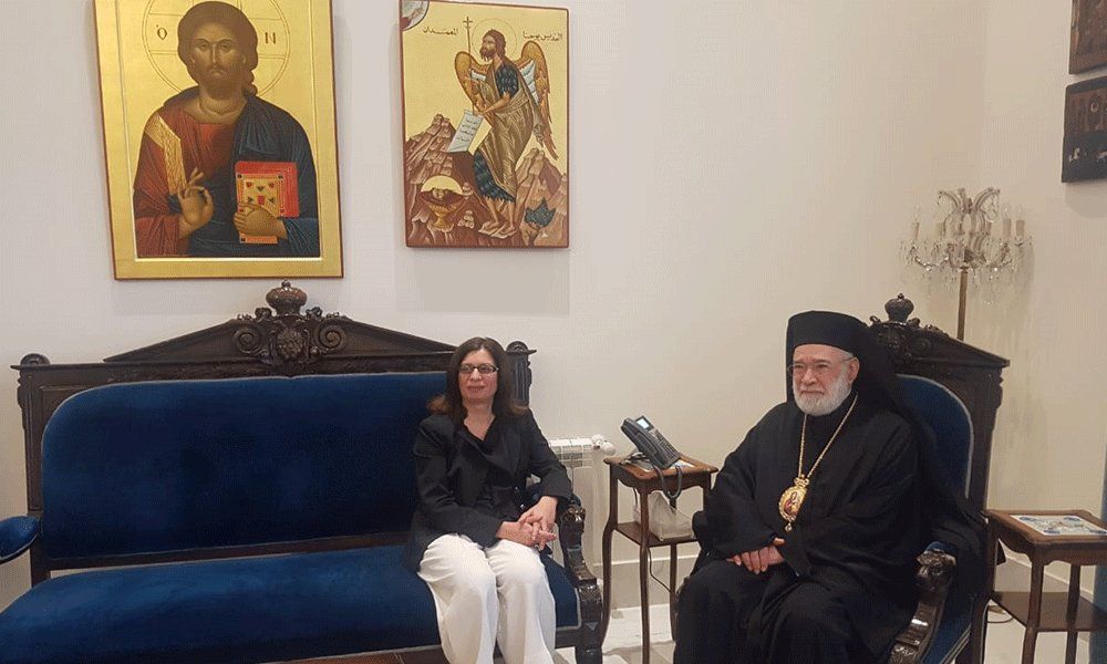 استقبل متروبوليت بيروت وتوابعها للروم الارثوذكس المطران الياس عوده سفيرة قبرص في لبنان السيدة كريستينا رافتي في زيارة وداعية بسبب انتهاء مهمتها في لبنان.