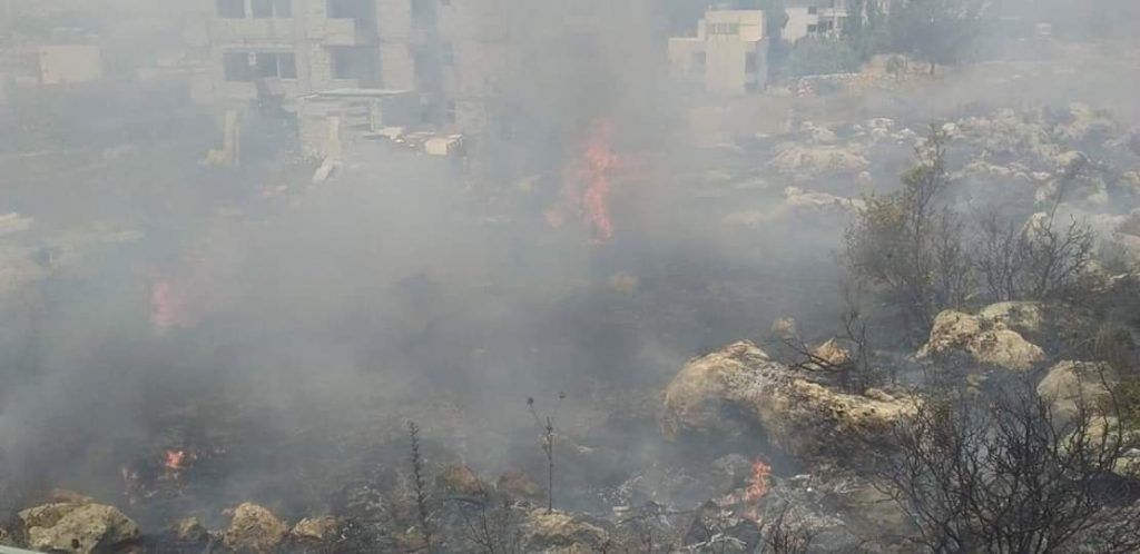 وفي بلدة البابلية، التهمت النار أشجار السرو والزيتون وفي السكسكية والغسانية اقتصرت على الأعشاب اليابسة.