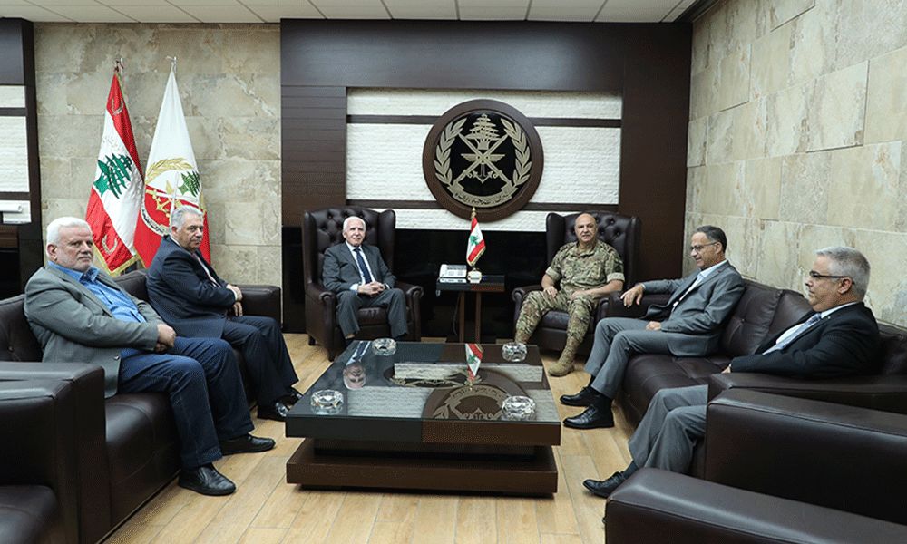 بحث قائد الجيش العماد جوزاف عون، في مكتبه في اليرزة، مع الوزير الفلسطيني عزام الأحمد يرافقه السفير الفلسطيني في لبنان أشرف دبور، في آخر المستجدات المتعلقة بالوضع الفلسطيني في لبنان.