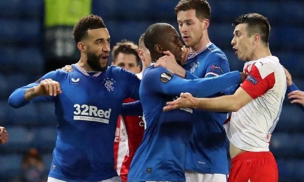 ووقع شجار كبير خلال مباراة رينجرز التي خسرها أمام سلافيا براغ في غلاسكو، مساء الخميس، بين لاعب رينجرز ذو البشرة السمراء، غلين كامارا، ولاعب براغ أوندريه كوديلا.