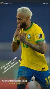 ونشر نيمار صورة له عبر حسابه على “إنستغرام”، من مباراة بيرو التي انتهت بفوز البرازيل برباعية نظيفة، وعلق عليها: “الاحتفال بهدف الأمس على العشب الجميل لنيلتون.. رجاء اصلحوا العشب”.