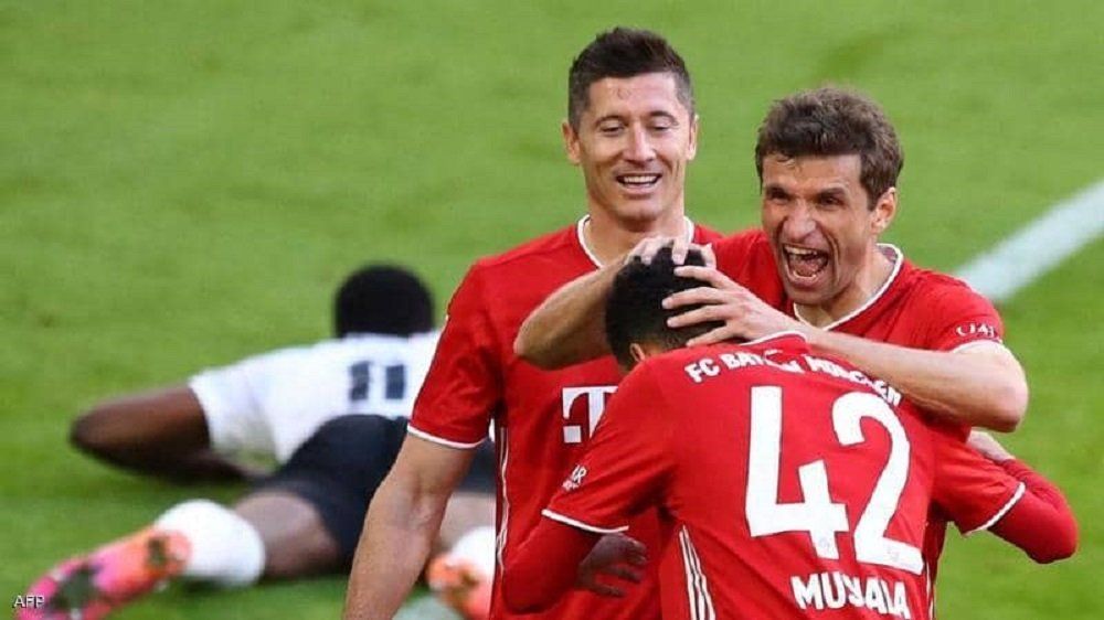 وسجّل تشوبو-موتينغ بمفرده أربعة اهداف لمصلحة الفريق البافاري (8، 28، 35، 82)، وأضاف أيضاً كل من الشاب جمال موسيالا هدفين (16 و48)، يان لوكا-فارم (27 خطأ في مرمى فريقه)، ماليك تيلمان (47)، لوروا سانيه (65)، والفرنسيين الثلاثة مايكل كويزانس (80) وبونا سار (86) وكورنتان توليسو (88).