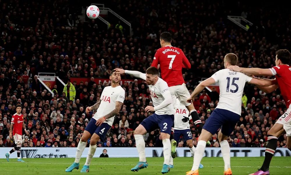 ومنح رونالدو التقدم بهدف ليونايتد في الدقيقة 12 بتسديدة هائلة من خارج منطقة الجزاء من حوالي 20 مترا، لكن هاري كين أدرك التعادل من ركلة جزاء في الدقيقة 35.
