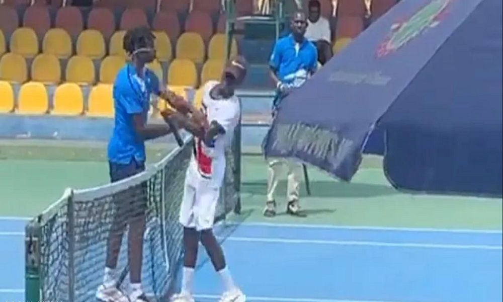 وصفع الفرنسي مايكل كوامي البالغ من العمر 15 عاما، بعد انتهاء مباراته في الجولة الأولى من بطولة الاتحاد الدولي للتنس لفئة الناشئين في غانا، خصمه الفرنسي رافاييل ني أنكراه، الذي تمكن من هزيمته.