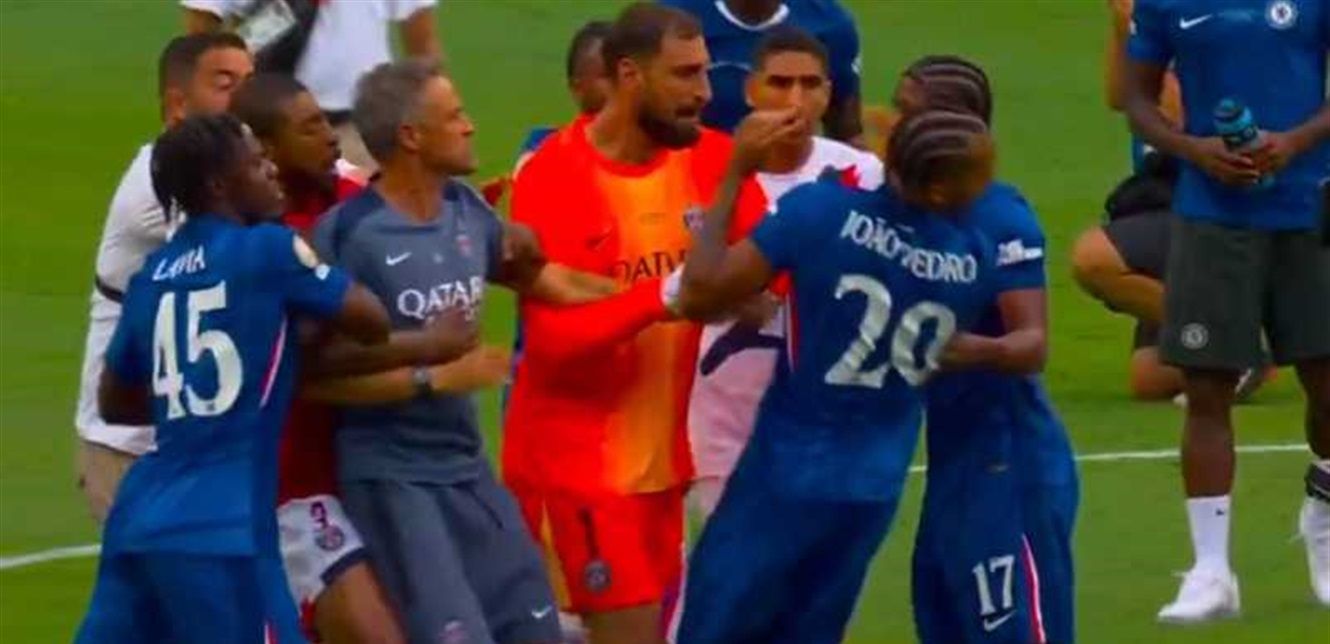 وبعد انتصار تشلسي بنتيجة 3-0، على باريس سان جرمان، في مفاجأة مدوية بنهائي مونديال الأندية، فقد عدد من اللاعبين أعصابهم ودخلوا في شجار مع بعضهم البعض.