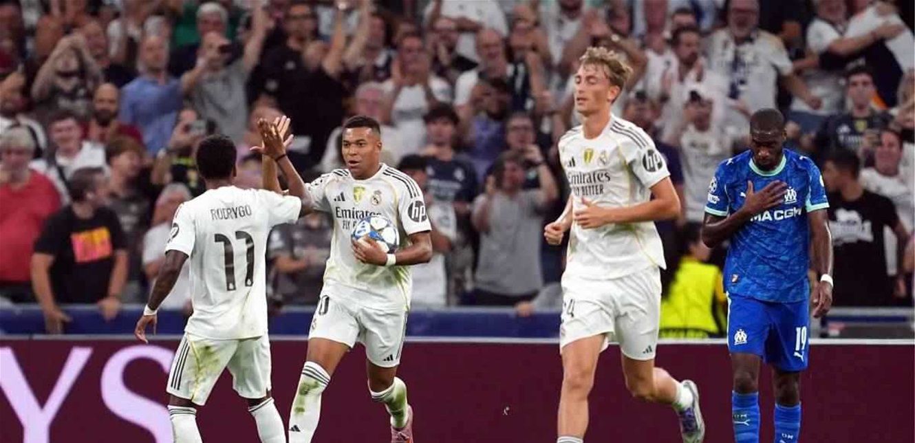 انتزع ريال مدريد فوزًا مثيرًا على ضيفه مارسيليا (2-1) في افتتاح مشواره بدوري أبطال أوروبا، بفضل ثنائية الفرنسي كيليان مبابي من ركلتي جزاء، في لقاء شهد جدلًا تحكيميًا واسعًا على ملعب "سانتياغو برنابيو".