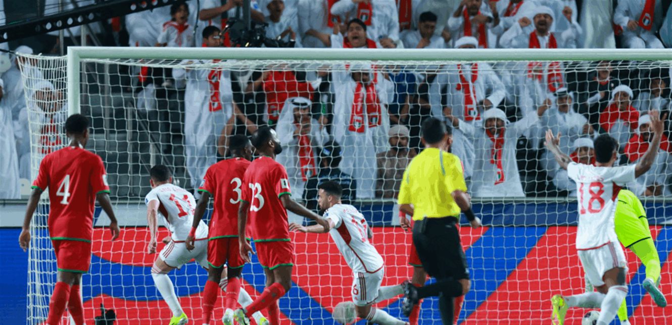 اقتنص المنتخب الإماراتي فوزًا ثمينًا على نظيره العُماني بنتيجة 2–1 السبت، ضمن الجولة الثانية من المجموعة الأولى في الملحق الآسيوي المؤهل إلى كأس العالم 2026.