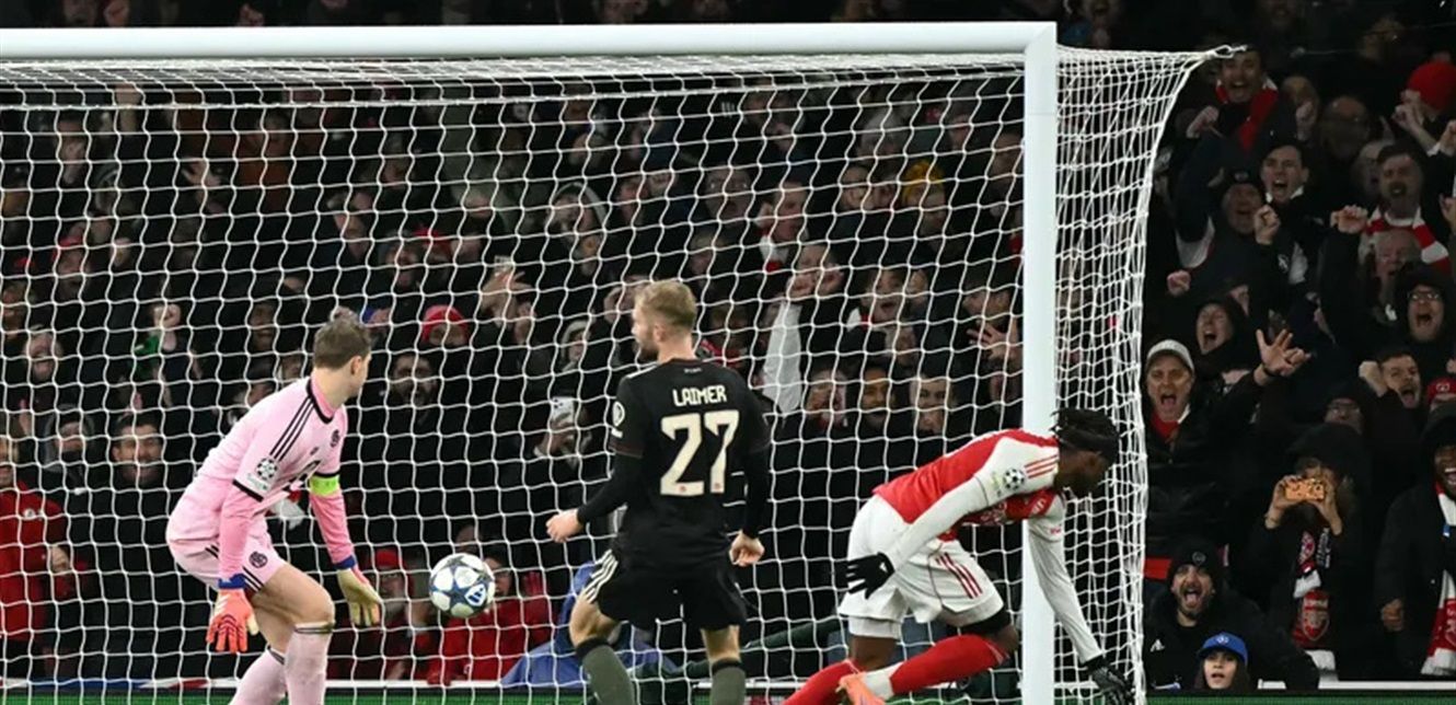 سجل جورين تيمبر هدف التقدم لفريق المدرب ميكل أرتيتا من ركلة ركنية في الدقيقة 22، لكن لاعب بايرن الشاب لينارت كارل سجل هدف التعادل بطريقة رائعة قبل نهاية الشوط الأول.
