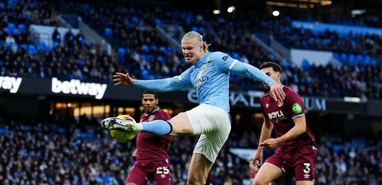 وسجّل هالاند هدفين في شباك وست هام يونايتد عند الدقيقتين 6 و69 من المباراة التي أُقيمت مساء السبت على ملعب الاتحاد ضمن الجولة السابعة عشرة من المسابقة.