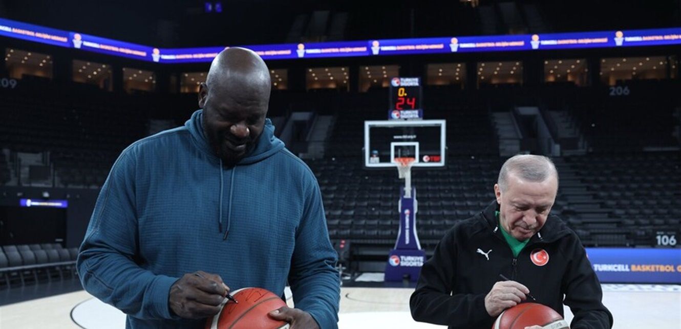 شهد مركز تطوير كرة السلة في مدينة إسطنبول حدثا رياضيا مميزا جمع بين الرئيس التركي رجب طيب أردوغان والأسطورة الأميركية السابقة في دوري كرة السلة للمحترفين شاكيل أونيل.