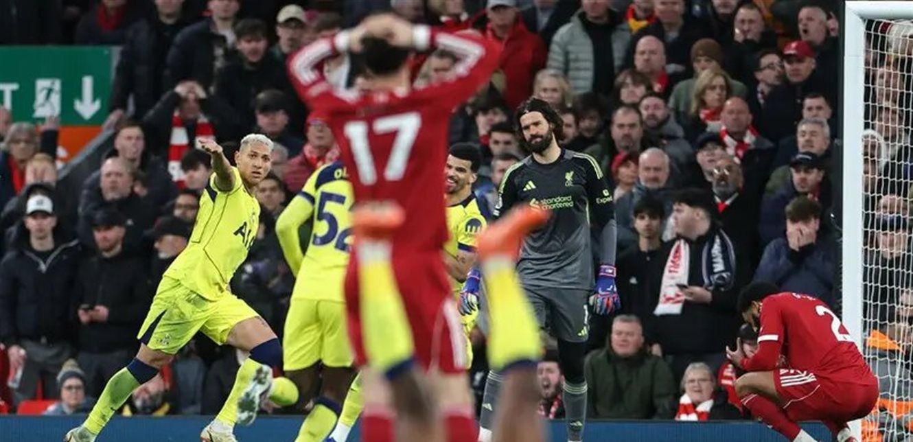 أضاع ليفربول فرصة العودة إلى المراكز الأربعة الأولى في الدوري الإنكليزي الممتاز، بعد أن سجل البرازيلي ريتشارليسون لاعب توتنهام هوتسبير هدفاً في الدقائق الأخيرة، لتنتهي المباراة بالتعادل 1-1 على ملعب أنفيلد يوم الأحد.