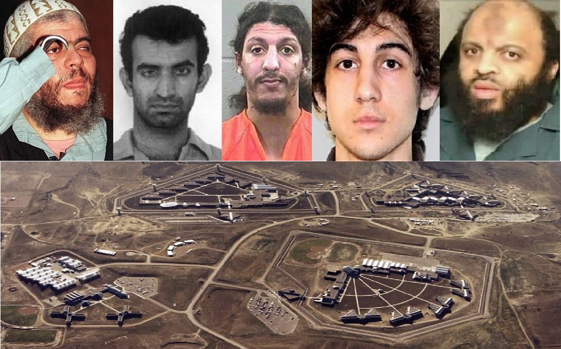السجن الشديد الحراسة يقع في المتاهات، وفيه بعض جيران إل تشابو ممن نعرفهم، وهم من اليمين زكريا موسوي وجوهر تسارناييف وريتشارد ريد ورمزي يوسف وأبو حمزة المصريبعض جيران Joaquin Guzmán الجدد في سجنه الجديد، هم أمنياً أخطر منه بكثير، وبعضهم وردت أسماؤهم في تقرير سابق نشرته "العربية.نت" الأسبوع الماضي، كزكريا موسوي، الفرنسي من أصل مغربي، لارتباطه بهجمات 11 سبتمبر 2001 بواشنطن ونيويورك، إضافة إلى رمزي يوسف، أحد المنفذين في 1993 لتفجير مركز التجارة العالمي بنيويورك، كما وأبو حمزة المصري، الذي سلمه القضاء البريطاني في 2004 إلى نظيره الأميركي، لمحاولته إقامة معسكر تدريب لإرهابيين بولاية أوريغون. ومن جيرانه في ADX أيضاً، الشيشاني جوهر تسارناييف الذي نفذ مع أخيه تامرلان تفجيرين متتاليين في منتصف أبريل 2013 بمدينة بوسطن الأميركية، إلى جانب ريتشارد ريد، المعروف بلقب "صاحب الحذاء الناسف" إشارة إلى انتعاله حذاءً مفخخاً حاول استخدامه لتفجير طائرة تابعة لشركة "أميركان إيرلاينز" كانت في ديسمبر 2001 متوجهة من باريس إلى ميامي.