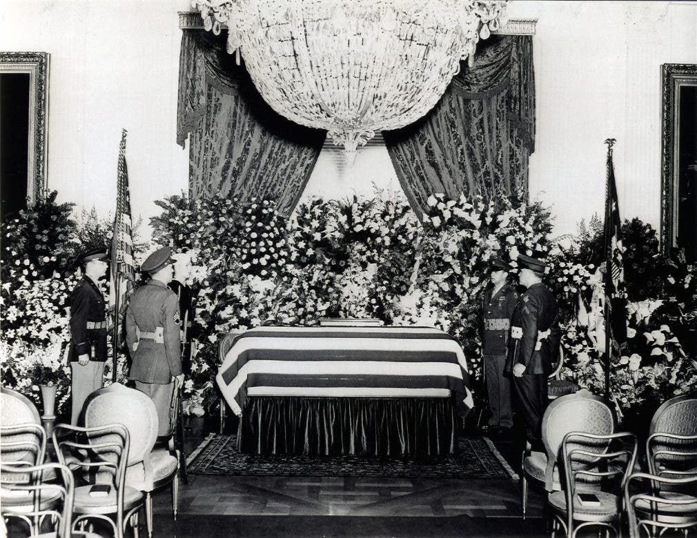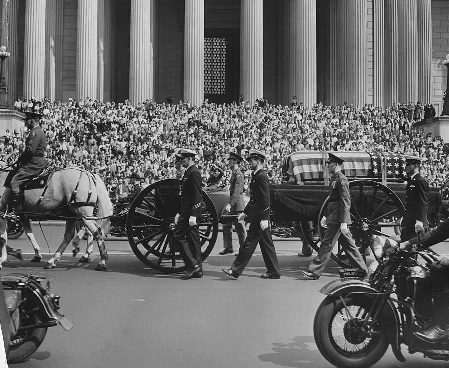 صورة للتابوت الموشح بالعلم الأميركي والذي وضعت داخله جثة فرانكلن روزفلت