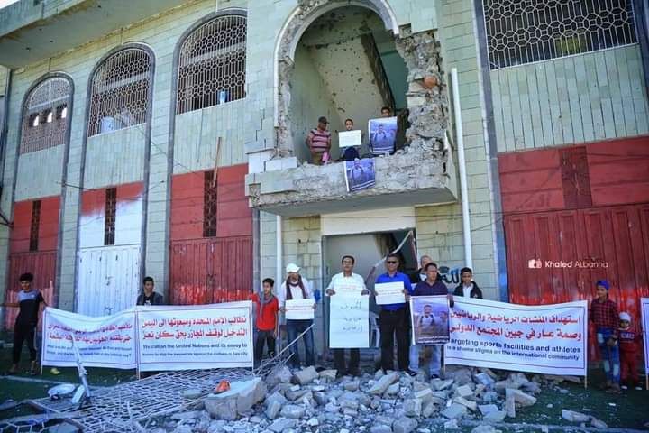 واستنكر المشاركون في الوقفة الاحتجاجية الجريمة الإرهابية التي ارتكبتها ميليشيا الحوثي، أمس السبت، بقصف ملعب النادي الأهلي، والتي أودت بحياة الكابتن ناصر الريمي لاعب نادي طليعة تعز سابقاً ونجله، أثناء تواجدهما بساحة النادي الأهلي وإصابة طفلين شقيقين.