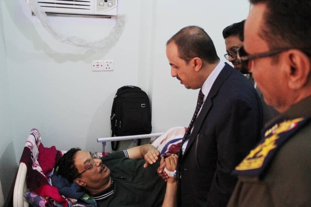 جاء ذلك خلال زيارته في العاصمة اليمنية المؤقتة عدن لجرحى الهجوم الإرهابي الذي استهدف مطار عدن الدولي بالتزامن مع وصول الحكومة.
