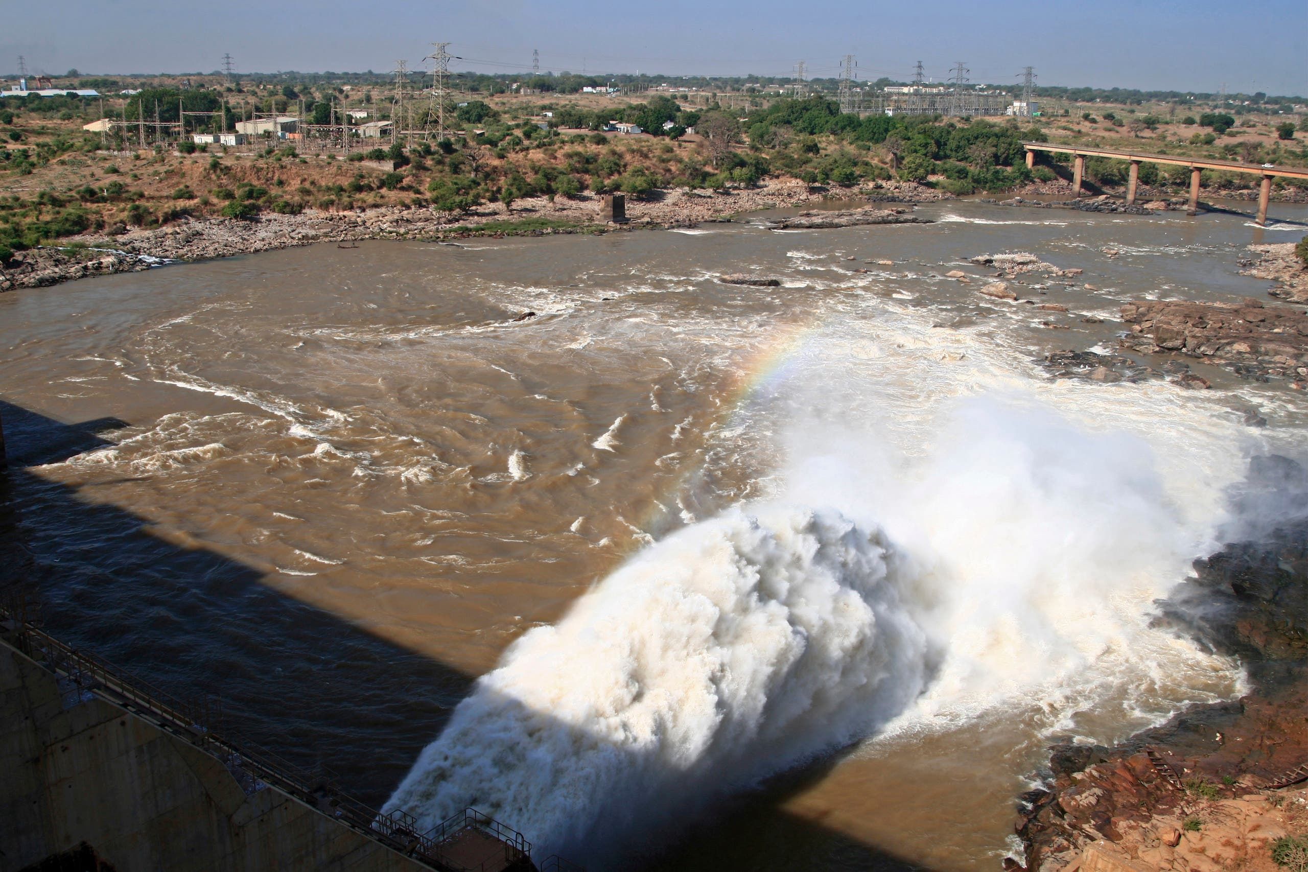 صورة تظهر تدفق المياه من سد الروصيرص على نهر النيل الأزرق عند الدمازين جنوب شرقي السودان (أرشيفية من فرانس برس)