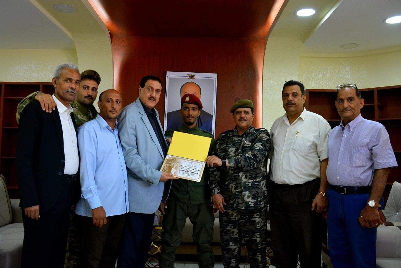 وأشاد مدير أمن عدن بشجاعة الجندي الحربي، مشيراً إلى أن تكريمه "هو تكريم لكل منتسبي قوة حماية المطار وأمن العاصمة عدن".