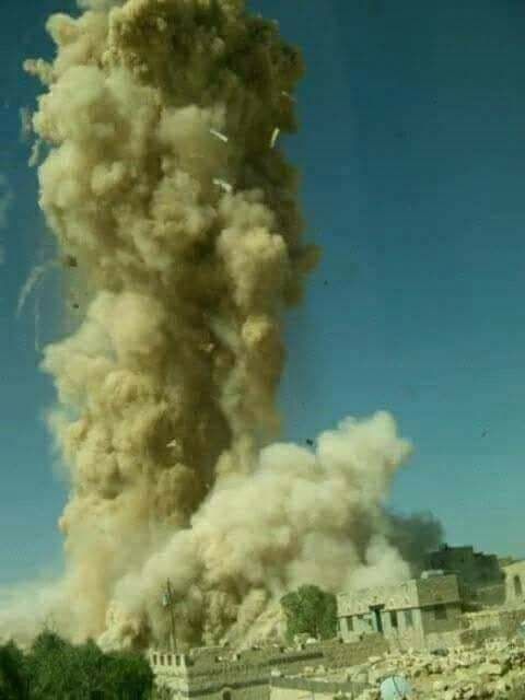 صورة لمنزل فجره الحوثيون على رؤوس ساكنيه في ذمار (أرشيفية)