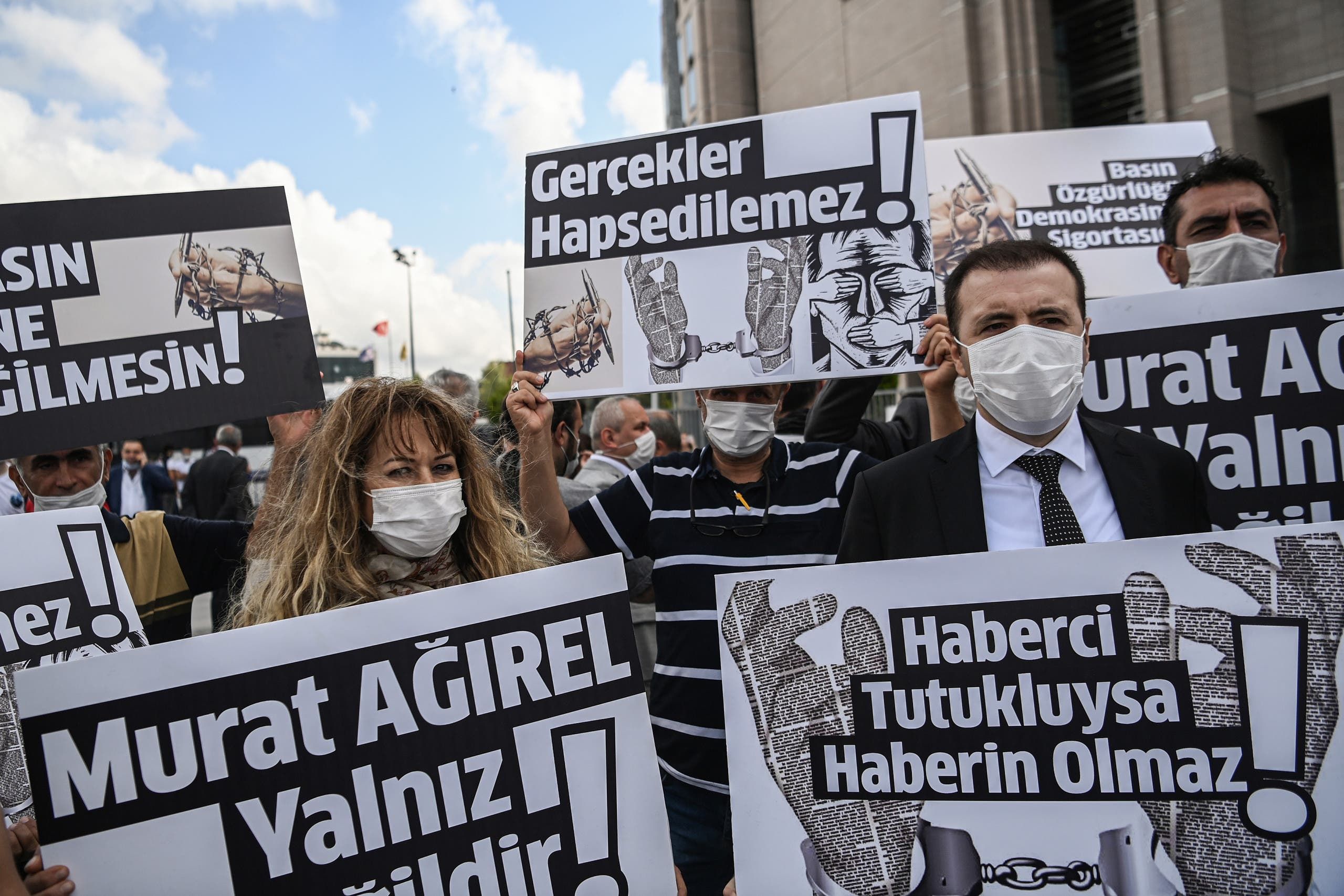 احتجاج في اسطنبول في سبتمبر 2020 على محاكمة صحفيين