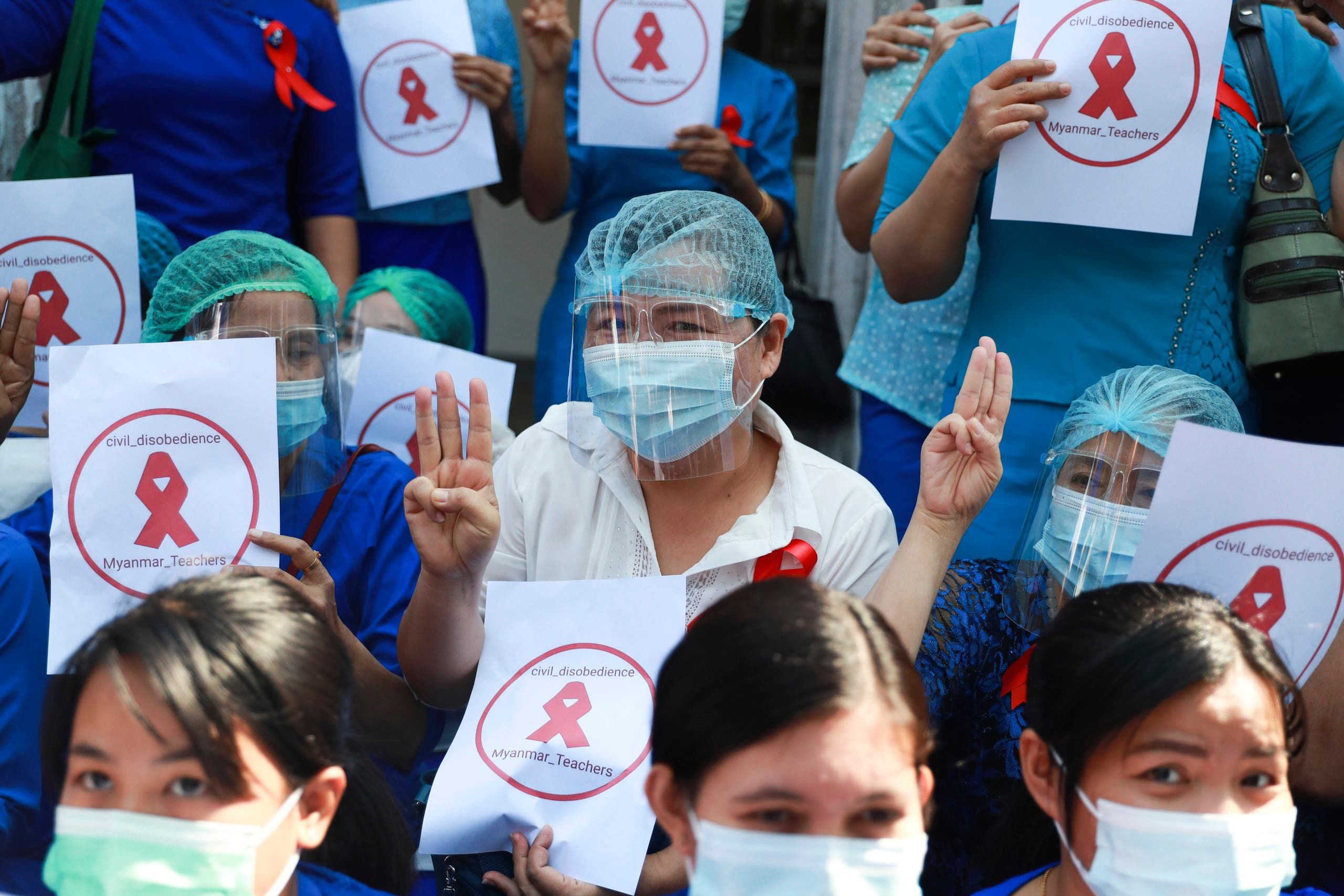 وانتشرت سريعاً منشورات عبر مواقع التواصل الاجتماعي تدعو إلى العصيان المدني منذ أن اعتقل الجيش كبار مسؤولي الحكومة، بمن فيهم الزعيمة الفعلية للبلاد، أون سان سو تشي، في عمليات مداهمة صباح الاثنين الماضي.