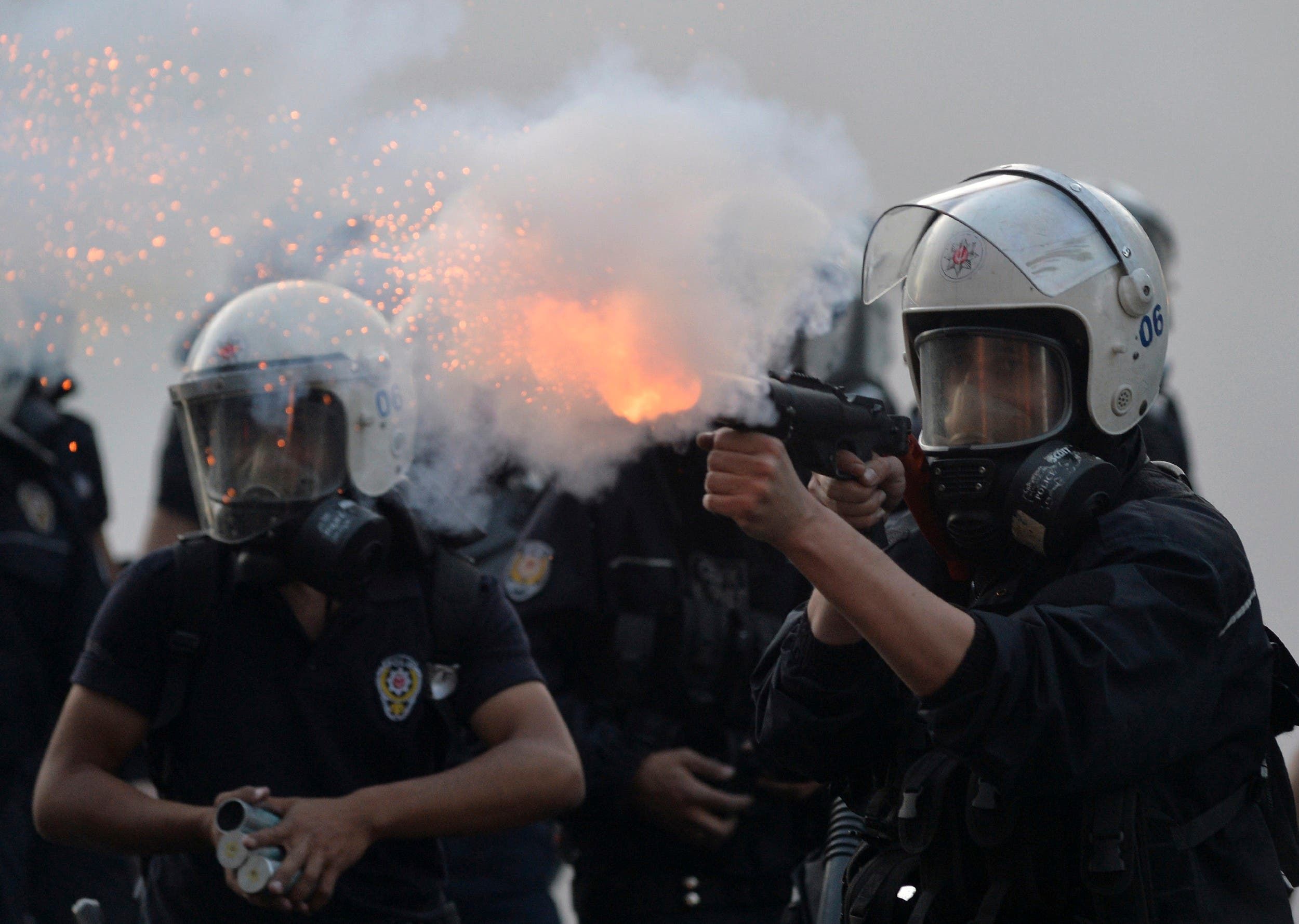2 صور شرطة تركيا أردوغان تطلق الغاز المسيل للدموع على المتظاهرين