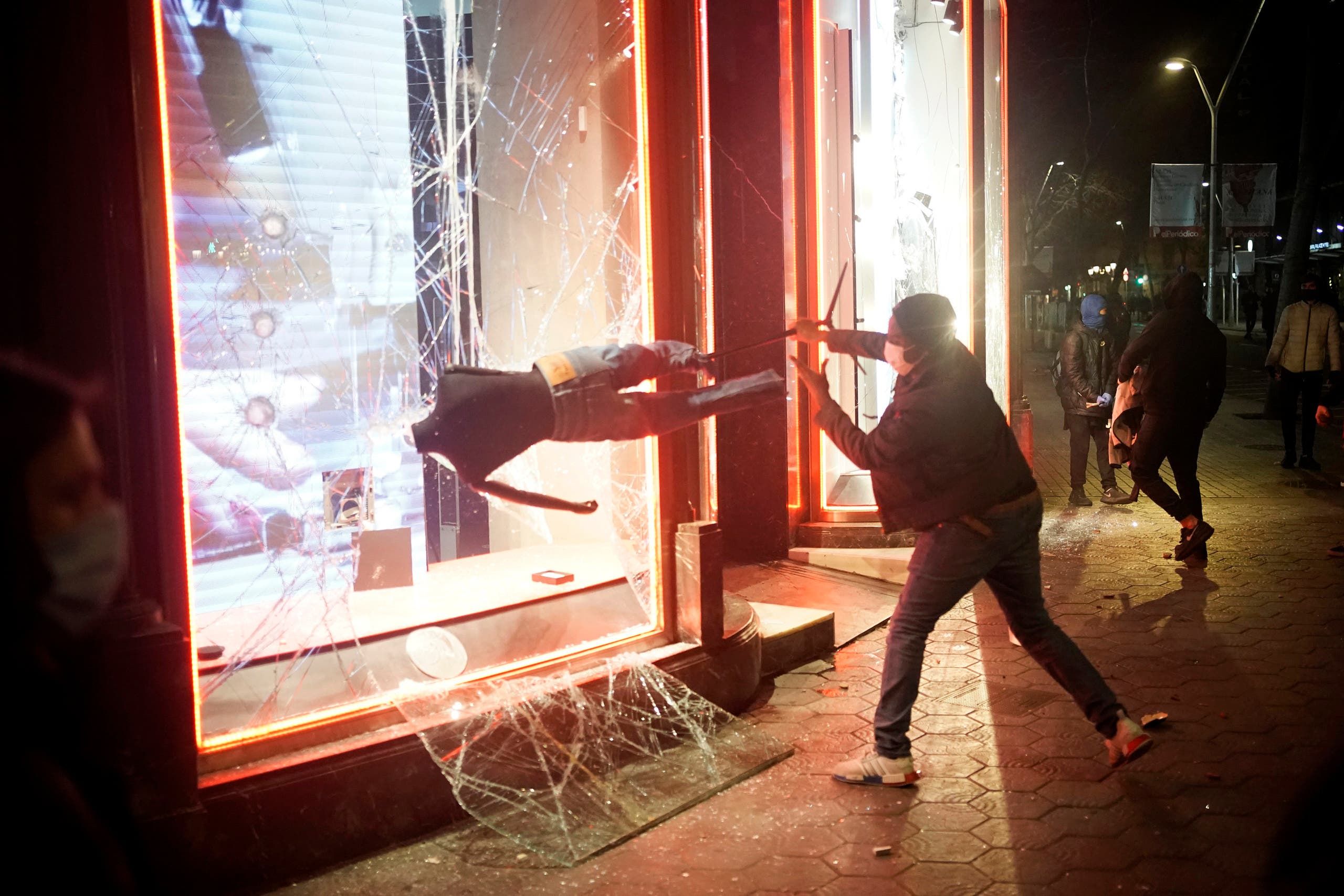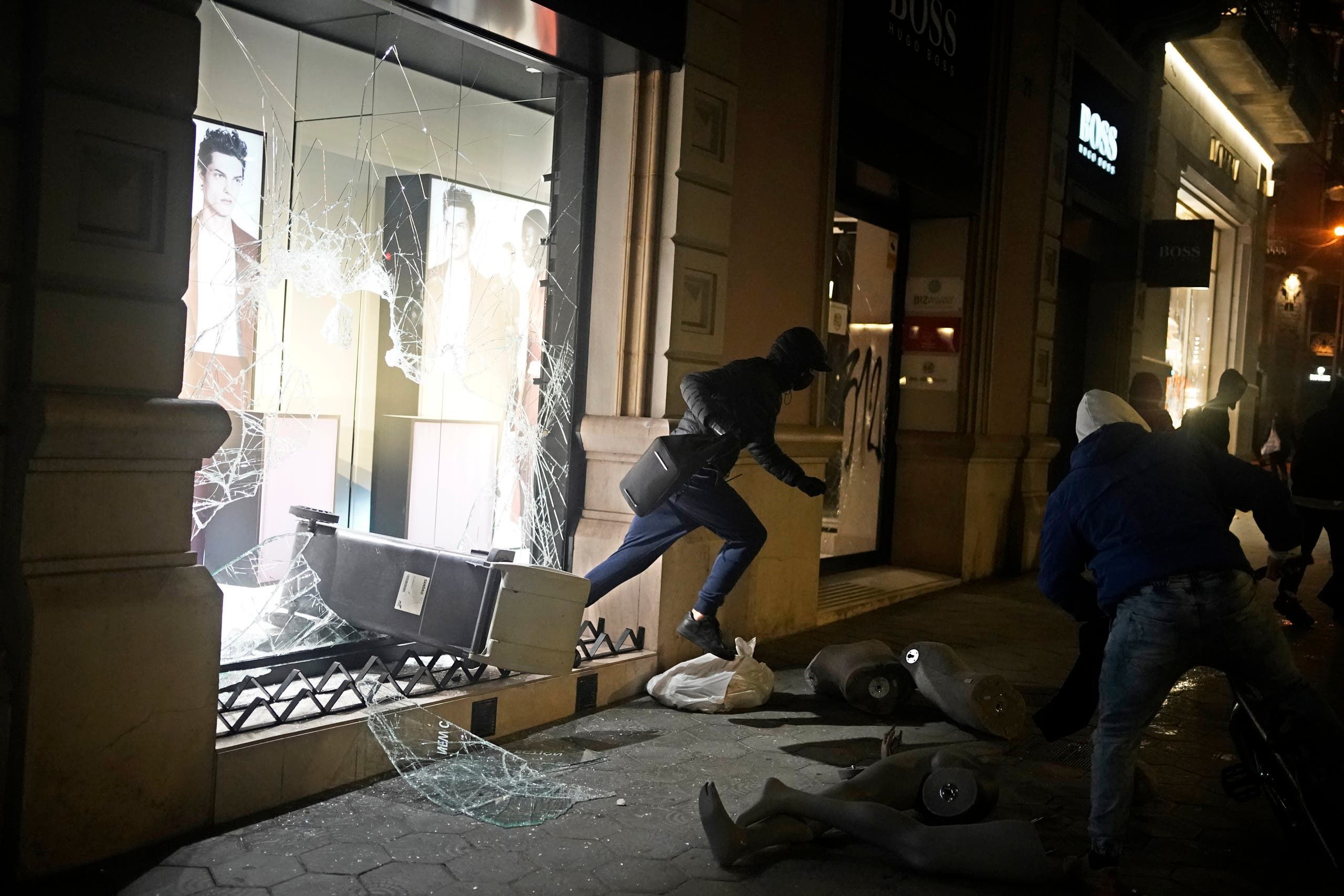 وحطّم بعض المحتجين واجهات محال في شارع "باسيج دي غراسيا" التجاري في برشلونة، ونهبوا محال ثياب فاخرة. كما هاجموا مبنى بورصة برشلونة وأضرموا النار في عدة دراجات نارية.