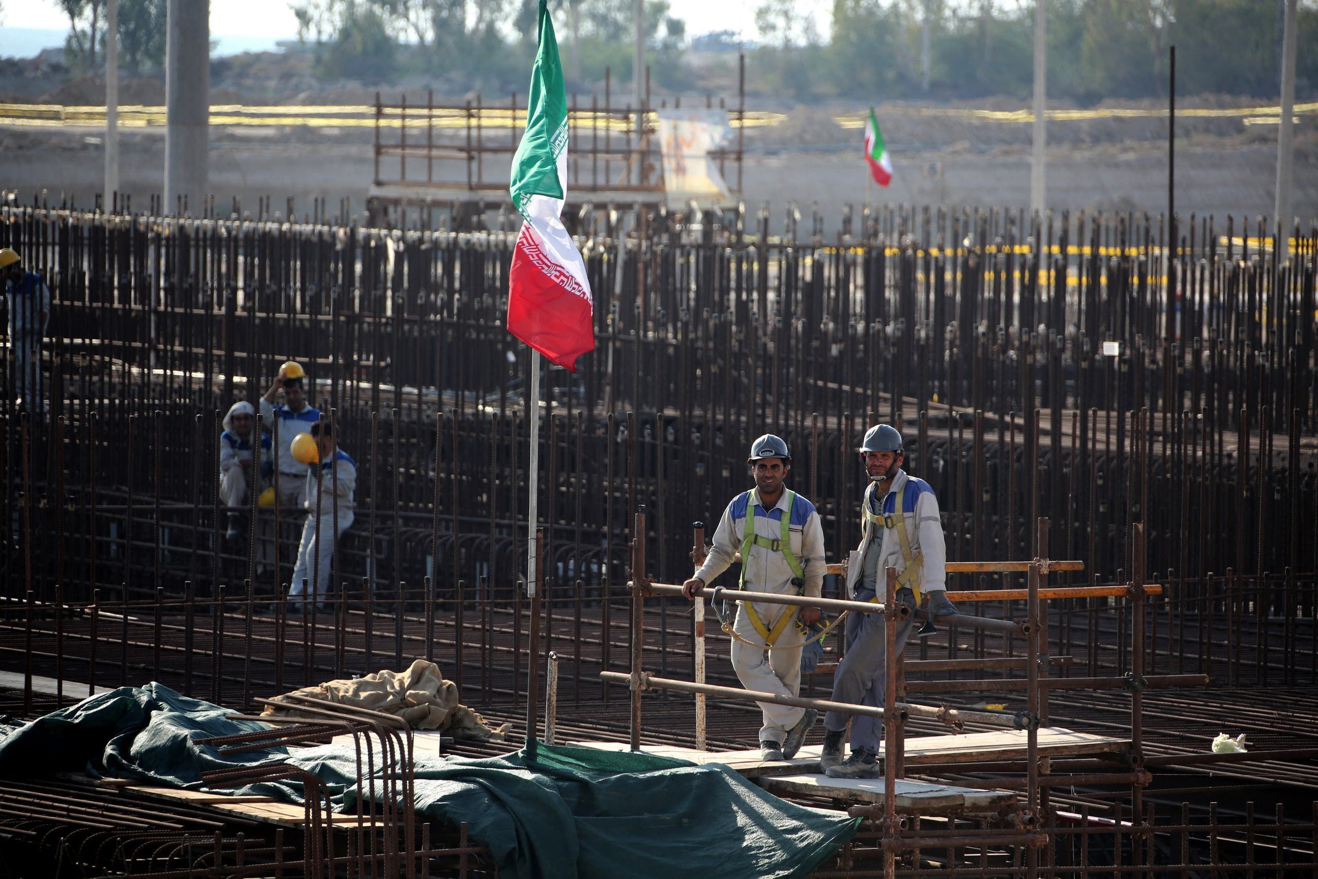 عمال عند موقع مفاعل بوشهر النووي في إيران (أرشيفية-فرانس برس)