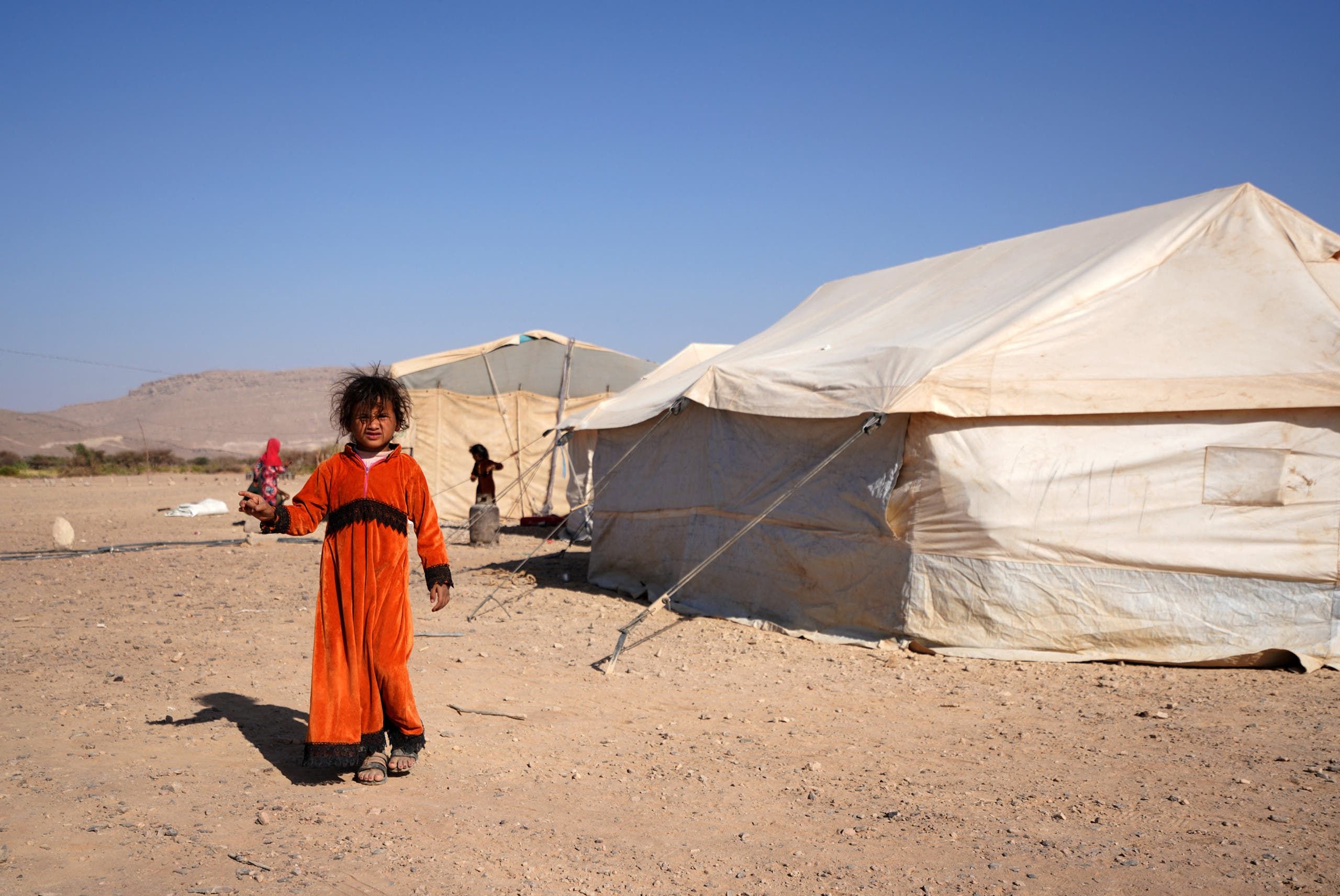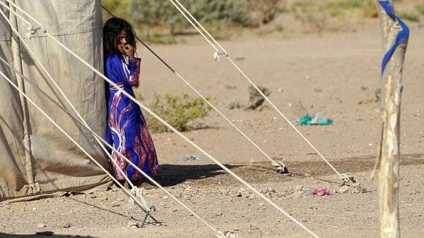 فتاة يمنية تقف في مخيم للنازحين في ضواحي مدينة مأرب يوم 18 فبراير (فرانس برس)
