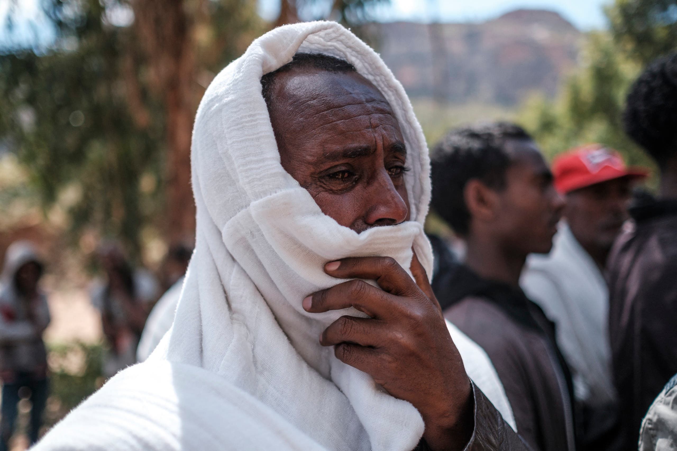 أحد سكان تيغراي يبكي بعد تشييع أحد الضحايا (أرشيفية- فرانس برس)