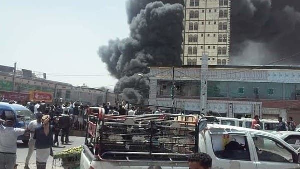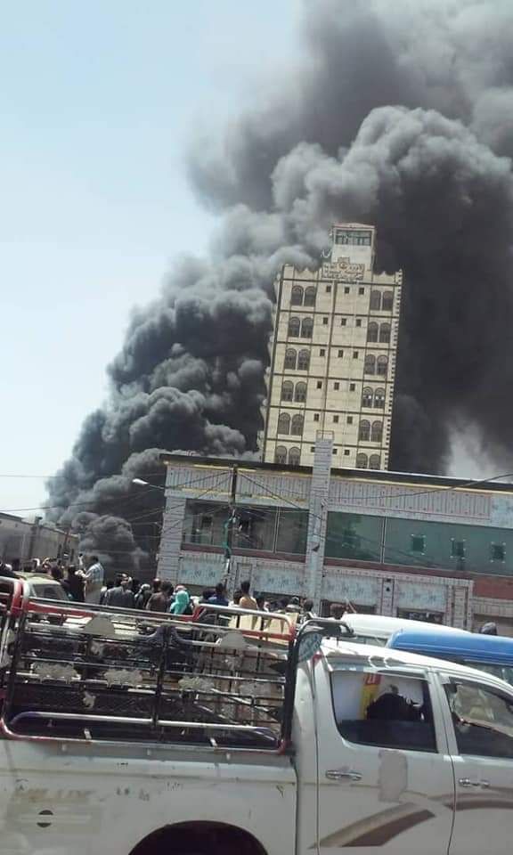 وبث ناشطون يمنيون صوراً وفيديوهات تظهر تصاعد أعمدة الدخان من مكان الحريق، فيما تجمع العديد من المواطنين بالقرب من الحريق.