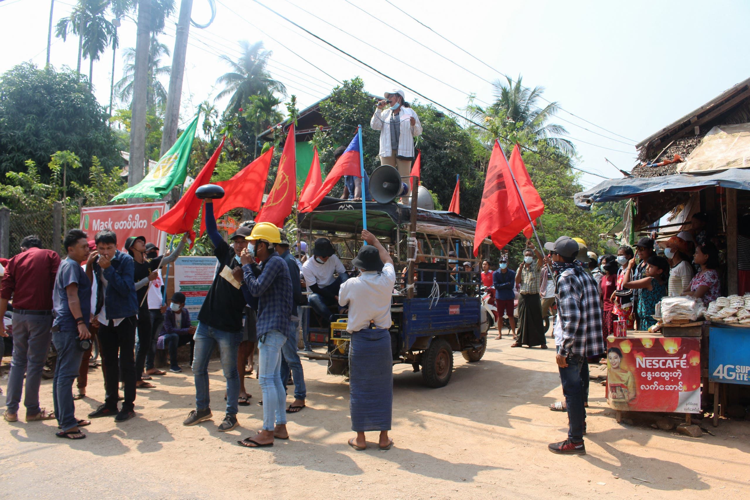 يأتي هذا بينما واصل المتظاهرون في ميانمار احتجاجاتهم على الحكم العسكري أمس الأحد على الرغم من ارتفاع حصيلة القتلى على يد قوات الأمن، بينما بدا المجلس العسكري الحاكم عازما بذات الدرجة على مقاومة الضغوط الخارجية وعدم تقديم أي تنازلات.