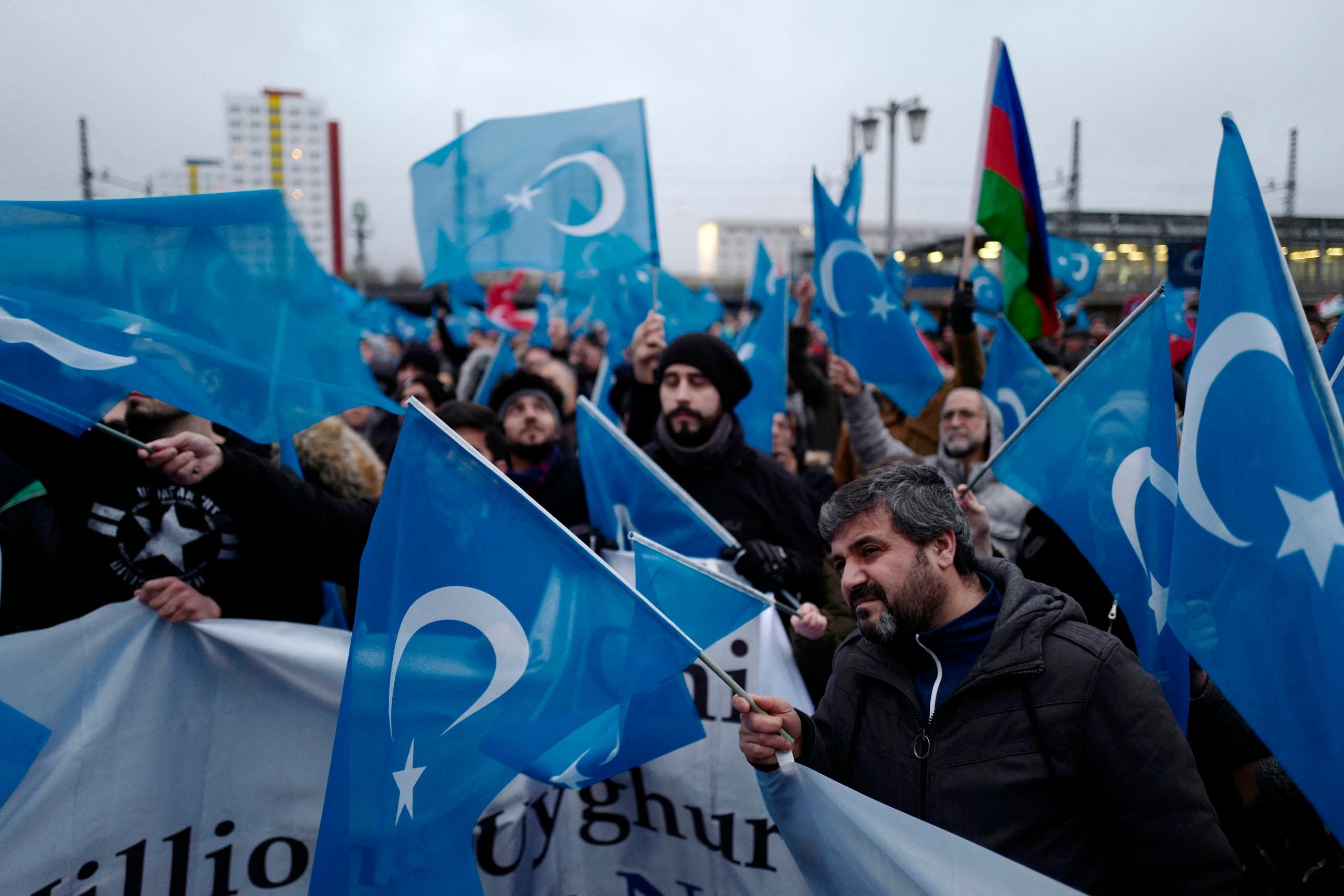مظاهرة منددة بتعامل الصين مع الإيغور أمام السفارة الصينية في برلين في 2019