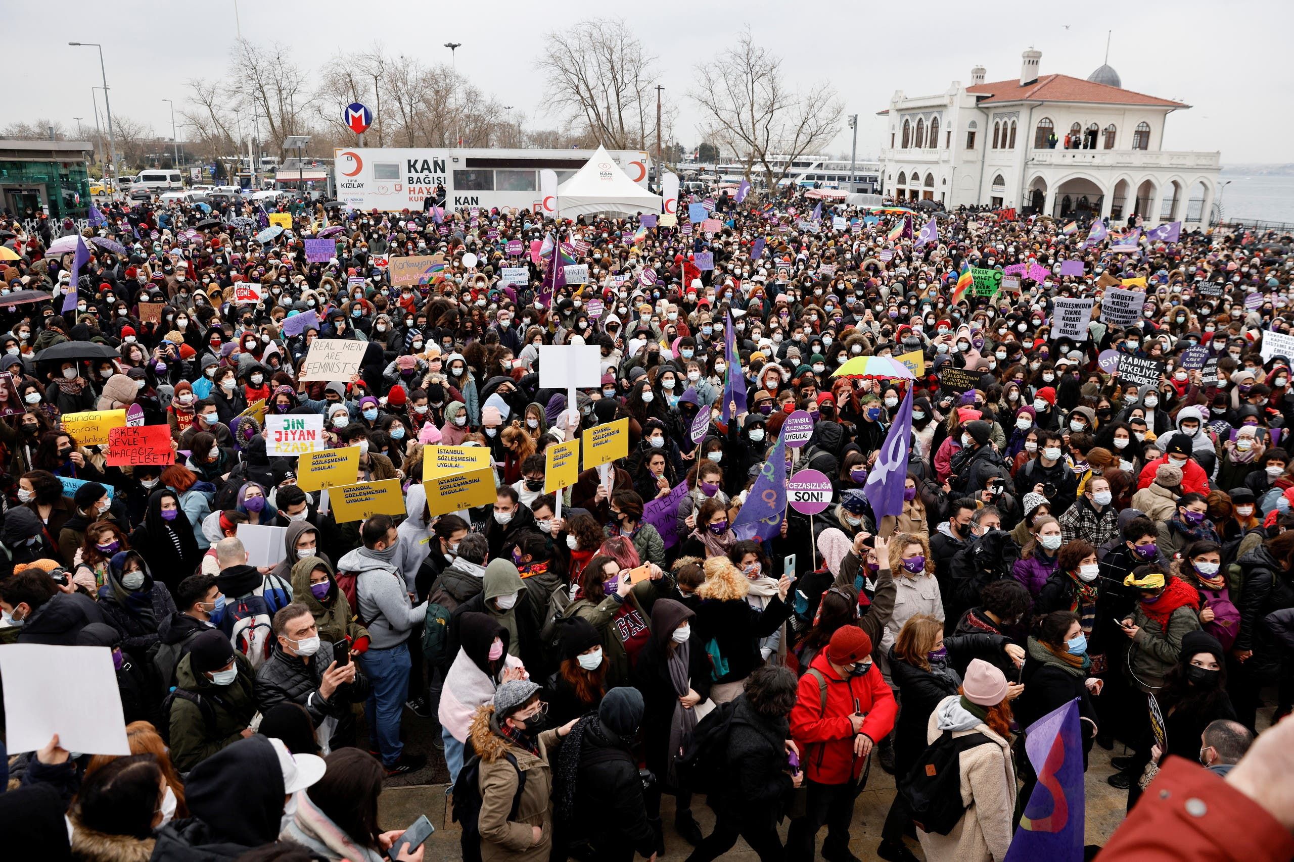 ونشرت الجريدة الرسمية قبل أسبوع قرار وقعه الرئيس التركي رجب طيب أردوغان بالانسحاب من اتفاقية اسطنبول التي تهدف إلى تعزيز حقوق المرأة وتفعيل إجراءات تحد من العنف ضد النساء.