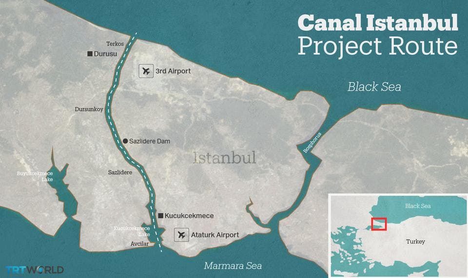 رسم توضيحي يظهر مشروع قناة اسطنبول