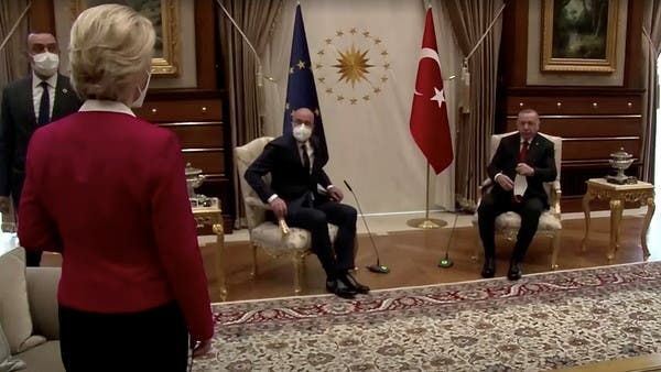 وتعرضت رئيسة المفوضية الأوروبية أورسولا فون دير لايين لإهانة، الثلاثاء، بعدما اضطرت إلى الجلوس على مقعد جانبي خلال اجتماع عقدته ورئيس المجلس الأوروبي شارل ميشال مع الرئيس التركي رجب طيب أردوغان في أنقرة.