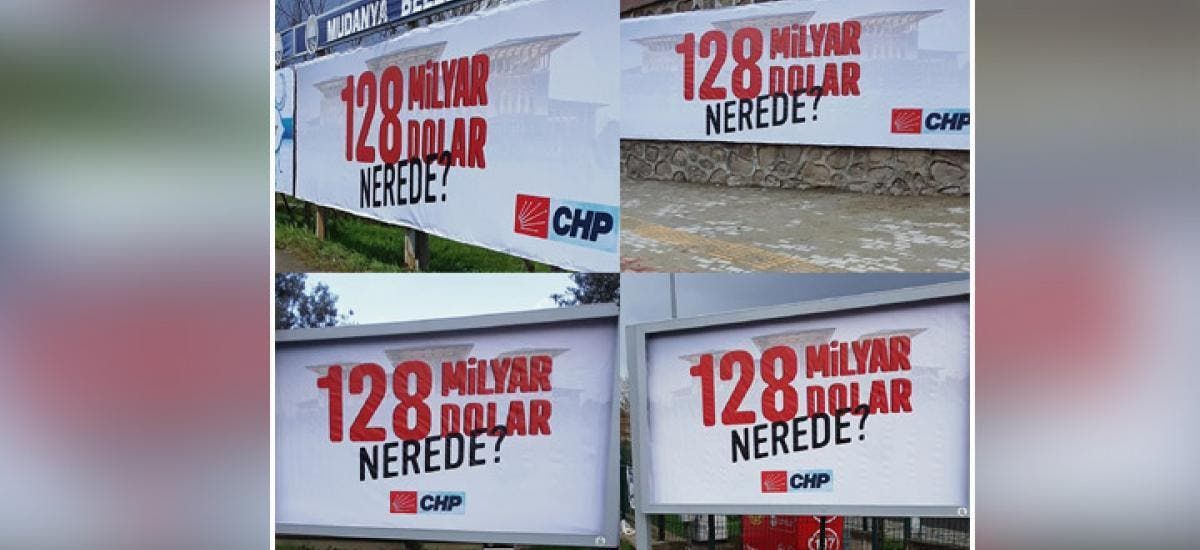 وكشفت مصادر من داخل "حزب الشعب الجمهوري" لـ"العربية.نت" أن محاميي الحزب سوف يقومون بالدفاع عن مسؤولي بلدية مودانيا التابعة لمدينة بورصة، بعدما اتهمهم مدّعٍ عام بإهانة رئيس البلاد على خلفية نشرهم للوحات التي كتبوا عليها "أين الـ 128 مليارا و250 مليون دولار؟".