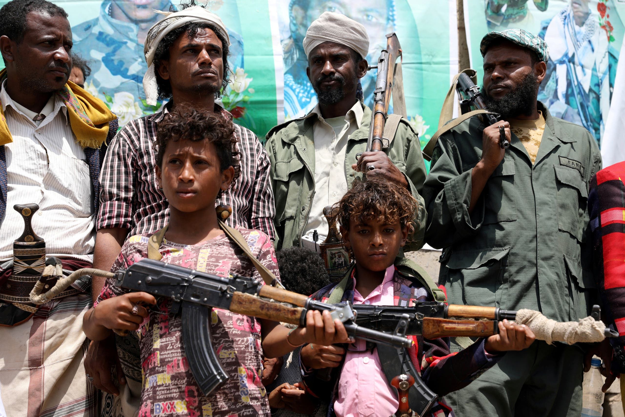 طفل بين مسلحين حوثيين في صنعاء