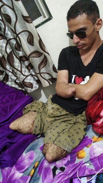 حيث يعيش هذا الطالب اليمني ظروفا أقل ما يقال عنها إنها جد صعبة، لا لشيء إلا لأنه قاد مبادرة تمكن خلالها من تفكيك ونزع 650 لغماً زرعتها ميليشيات الحوثي في ريف تعز لكن مبادرته لم تكلل بالنجاح المطلوب، لاسيما أنه يتعامل مع ألغام قادرة على الانفجار في أية لحظة، وهو ما حدث فعلا إذ انفجر أحدها وتسبب ببتر أطرافه الأربعة وفقدان عينه.