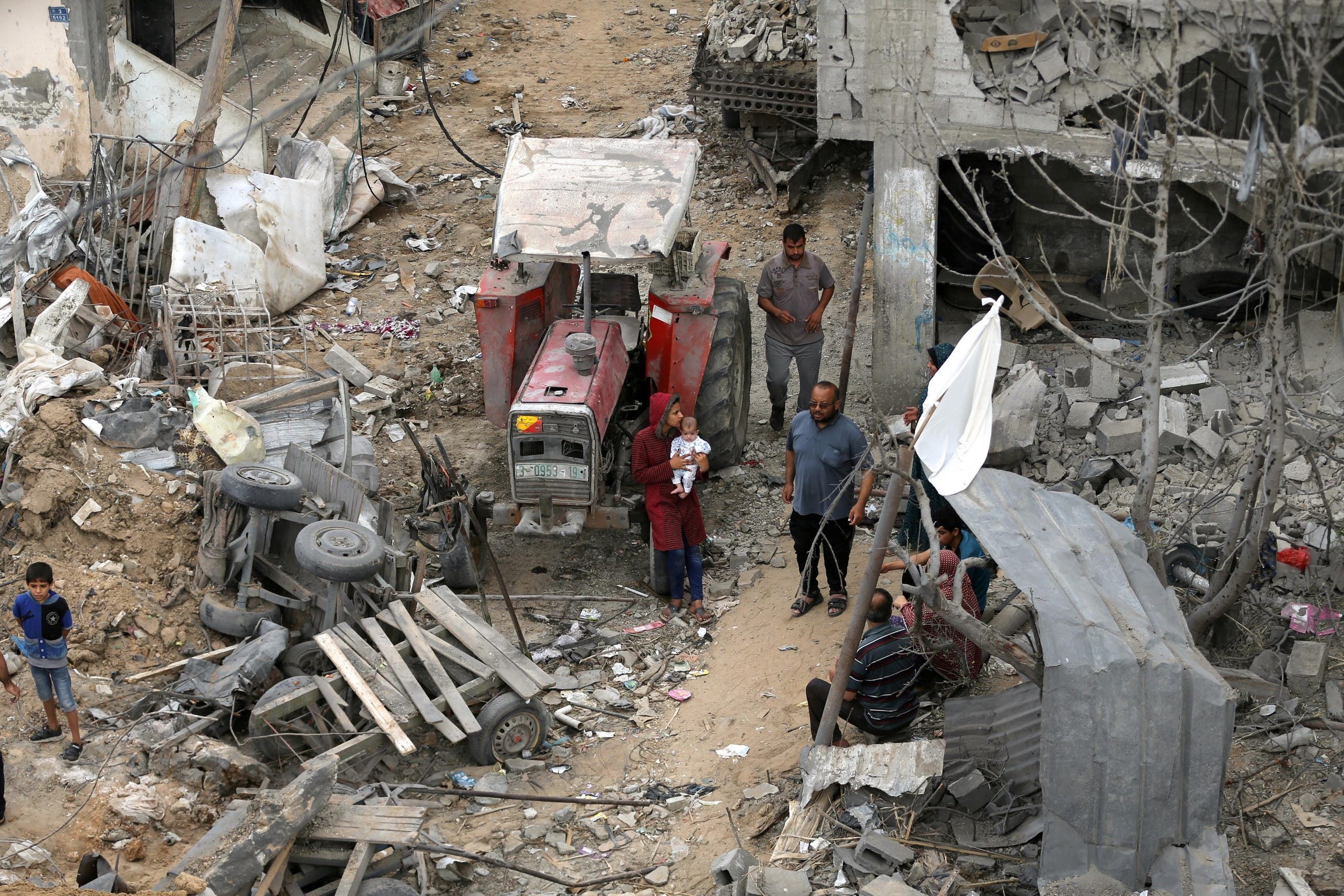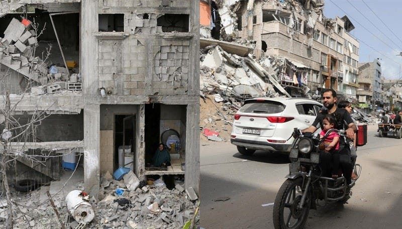 فلسطينيون يعودون إلى منازلهم التي دُمرت خلال ضربات جوية إسرائيلية على غزة