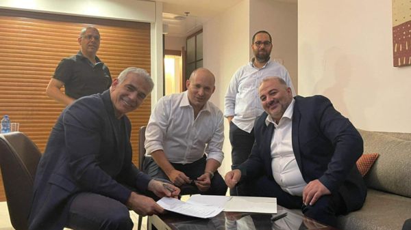 توقيع منصور عباس على اتفاق الراكة في الحكومة الإسرائيلية الجديدة
