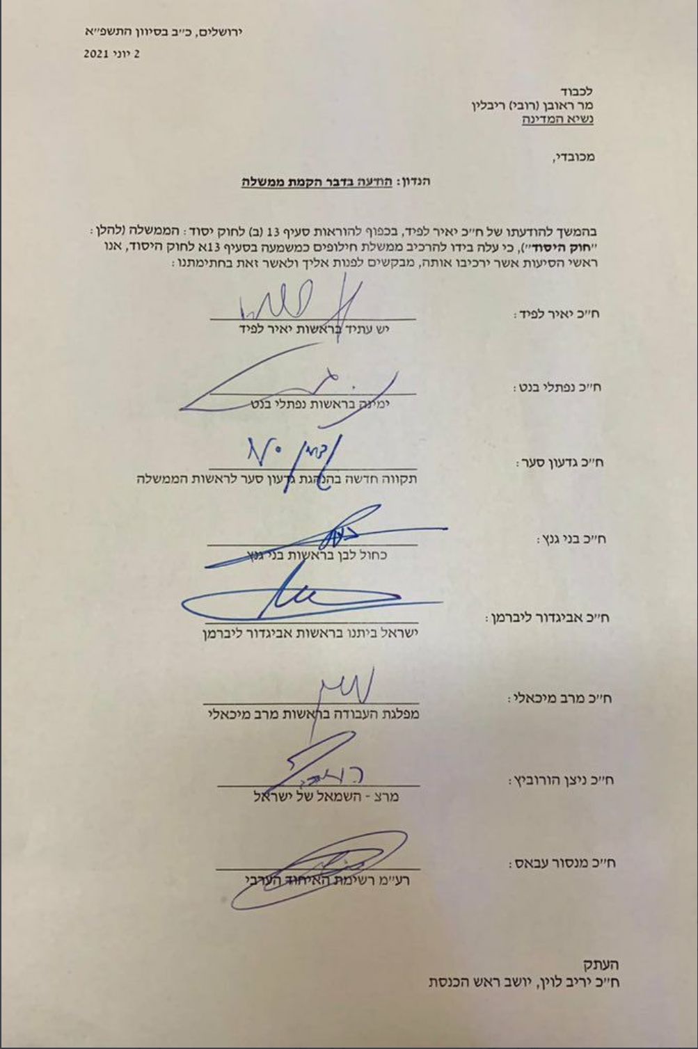 وأبلغ زعيم المعارضة، الرئيس الإسرائيلي بنجاحه في تشكيل ائتلاف حكومي.